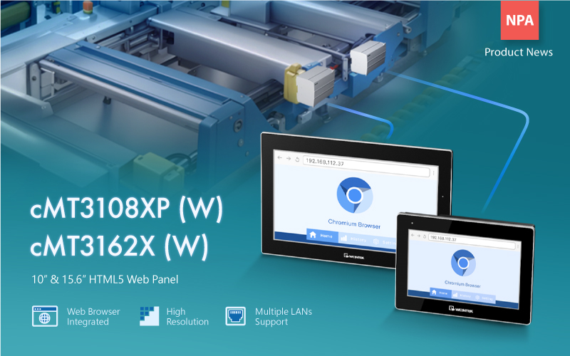 Программируемые панели оператора cMT3108XP (W) и cMT3162X (W) с встроенными веб-браузерами, которые обеспечивают быстрый доступ к веб-страницам ПЛК, системам SCADA.