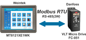 Полная инструкция по настройке RS-485 и подключению преобразователя частоты Danfoss FC-051 к программируемой панели оператора Weintek.