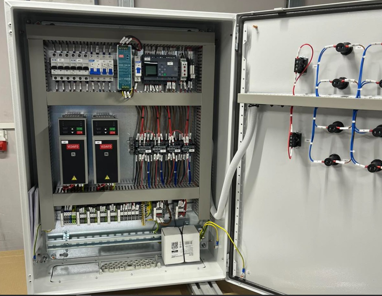 Реализация системы управления с помощью плк SIEMENS LOGO и частотных преобразователей VEDA для управления двумя группами насосов с возможностью переключения по наработке часов