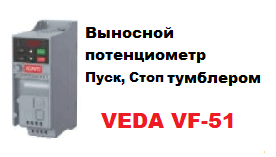 В данной статье рассмотрим управление скоростью вращения двигателя от выносного потенциометра частотного преобразователя VEDA VF-51. Пуск, стоп - тумблером.