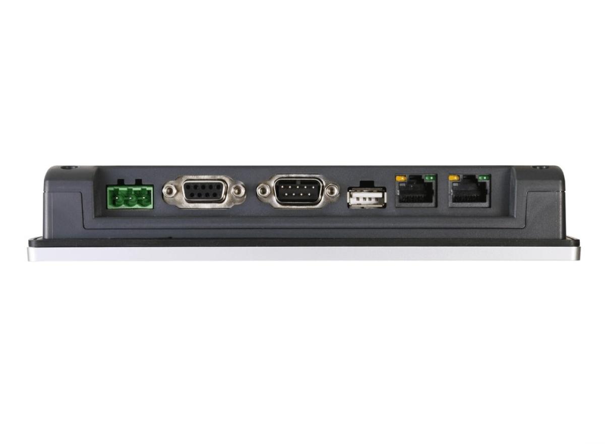 Программируемая панель оператора, диагональ 7, WVA, алюминиевый корпус, разрешение 1024х600, процессор Quad-core RISC, память Flash 4 Гб, RAM 1Гб, Ethernet x2, USB 2.,0 x1, RS-232x1, RS-485x2, CAN Bus, EasyAccess 2.0 (опция), Dashboard (опция), CODESYS (опция).